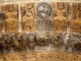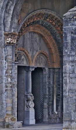 Son portail roman sculpté est l’œuvre de deux artistes du XIIè siècle qui ont travaillé de part et d’autre des Pyrénées.
