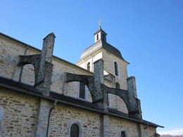 * clocher-porche, nef de 4 travées à arcades en plein cintre