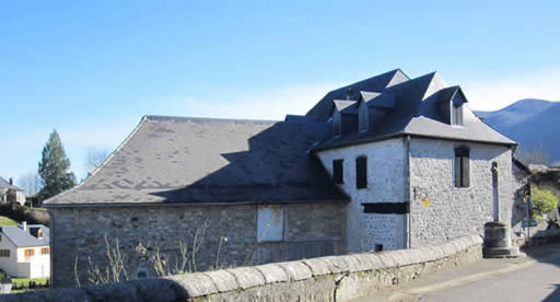 Appuyée à un massif clocher carré à contreforts évoquant un donjon fortifié, l' église, de dimensions réduites, à nef unique, choeur polygonal à cinq pans et chapelles latérales, a été terminée vers 1520 sous le vicomte de Béarn et roi Henri II de Navarre Albret. Elle possède un beau portail gothique flamboyant sous le porche sud, des voûtes quadripartites sur la nef, à liernes et tiercerons sur le choeur et les chapelles latérales.