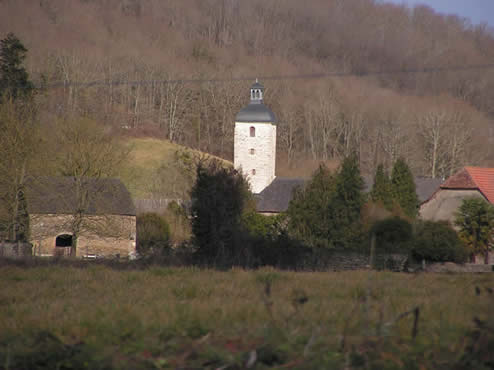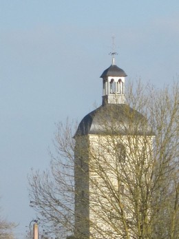 clocher-porche surmonté d'un toit à deux corps à l'impériale