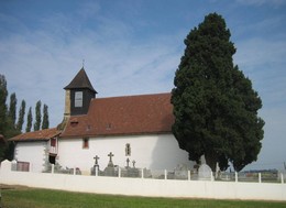 Clocher-tour accolé à un porche d' origine romane ; une chapelle latérale au nord ; chevet plat.