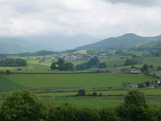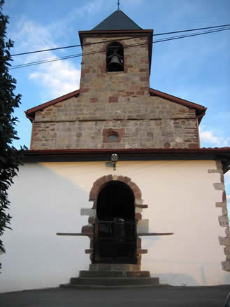 A l' intérieur, un couloir donne accès à la cuisine à gauche et aux chambres à droite. La partie la plus ancienne, en rez-de-chaussée et sous appentis, correspond à la cuisine et à l' ezkaratz de la ferme initiale transformée en dépendance. Cet appentis se prolonge à l' arrière par un toit à deux pans et pignon couvert abritant une étable et un fenil. Les ouvertures présentent des encadrements de bois, sauf une fenêtre à meneau en grès en élévation latérale droite. Les pannes sont ouvragées.