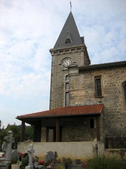 Eglise fondée à l' époque gothique, agrandie au 17e siècle (porte "des cagots"). En 1891, projet de restauration équivalant à une reconstruction quasi-totale. De 1910 à 1911, importante restauration et probable reconstruction du clocher par l' architecte bayonnais Darricau: la flèche fut ajoutée à cette occasion. Restauration au 20e siècle.