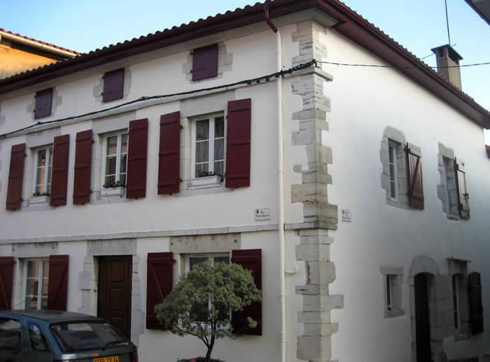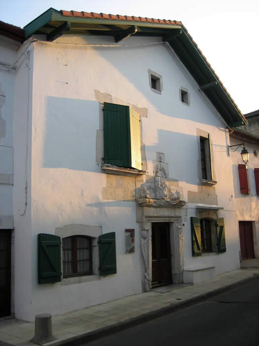 * maison dite "Hôtel, Restaurant Basque". La maison est datée du 4e quart 16e siècle : cartouche en façade daté de 1586. A l'intérieur, subsiste une tour d'escalier d'origine percée de plusieurs ouvertures fin 16e siècle (murées). La façade a été remaniée dans la 1ère moitié 18e siècle. En façade, un cadran solaire porte la date de 1790. Au cours du 20e siècle, la maison a été transformée en hôtel de voyageurs et restaurant. Au rez-de-chaussée, la bâtisse est traversée longitudinalement par un couloir pavé de dalles de calcaire. Tour d'escalier dans-oeuvre avec un escalier en vis sans jour tournant à gauche composé de marches à angle vif portant noyau.