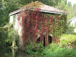Dans le parc, le four à pain est ruiné et les communs sous appentis possèdent une porte charretière en plein-cintre, à gros claveaux.