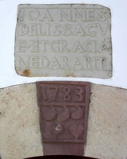 La maison Inda fut probablement construite à la fin du 16e siècle, comme l' atteste la forme et les motifs de la porte charretière (clé de l' arc ornée du monogramme IHS entremêlé, surmonté d' un serpent) en élévation antérieure. La parcelle de gauche porte le nom Indaberria, ce qui suppose un agrandissement postérieur à la construction originelle.