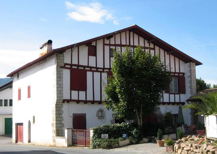 Typologie: logis indépendant avec dépendances dispersées; logis indépendant avec dépendances adossées sur l' arrière; ferme en corps de bâtiment unique tripartite devant avec ezkaratz au centre, étable sur l' arrière et fenil au-dessus; ferme en corps de bâtiment unique divisé en hauteur, avec logis à l' étage sur l' étable ou la bergerie ou le chai.