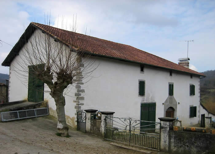 Typologie: logis indépendant ou maison de maître avec métairie avec dépendances dispersées; logis indépendant avec dépendances adossées sur l' arrière; ferme en corps de bâtiment unique tripartite devant avec ezkaratz au centre, étable sur l' arrière et fenil au-dessus.