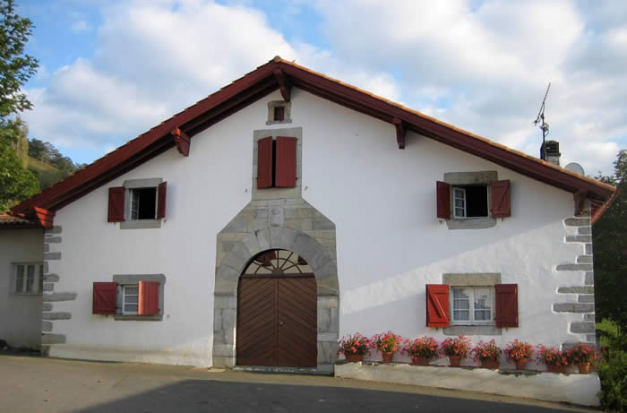 Typologie: logis indépendant ou maison de maître avec métairie avec dépendances dispersées; logis indépendant avec dépendances adossées sur l' arrière; ferme en corps de bâtiment unique tripartite devant avec ezkaratz au centre, étable sur l' arrière et fenil au-dessus.