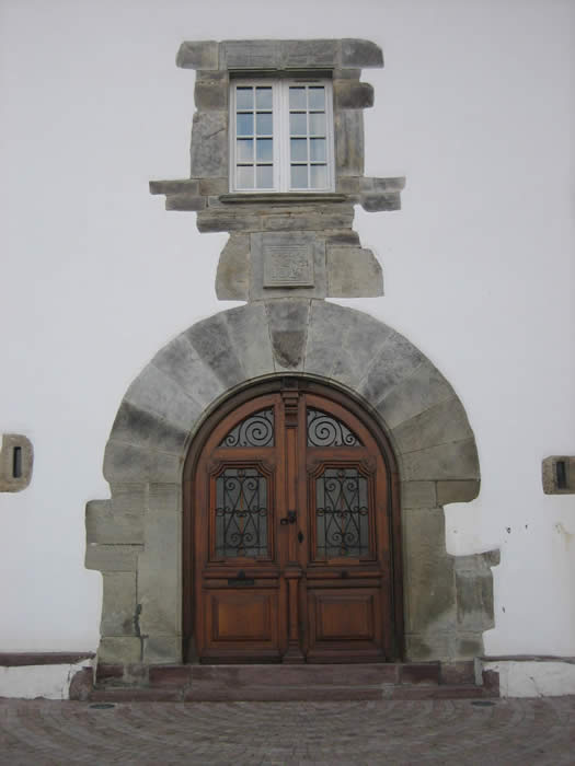 L' édifice date du 1er quart du 17e siècle, plus précisément de 1618, date portée sur une plaque au-dessus de la porte. Il abritait originellement une ferme de type monobloc tripartite. L' étable était située à l' arrière, le fenil aménagé au-dessus. Après avoir abrité le presbytère et s' être nommé Apezetxea, l' édifice a été transformé en mairie et des appartements locatifs sont aménagés au 1er étage. Des restaurations mineures ont eu lieu au cours du 19e siècle. Seule l' élévation antérieure a été épargnée par les importantes restaurations récentes. Les deux fenêtres de grès du rez-de-chaussée ont cependant été installées probablement à la fin du 18e siècle. Les façades latérales et postérieure sont entièrement reprises, seules subsistent d' origine la porte charretière et deux fenêtres.