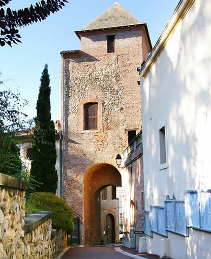 Située près de l’actuelle Mairie, cette porte, seul témoignage de pierres et de briques de l’enceinte fortifiée (XIVe siècle), séparait les quartiers de Coserans et du Mercadal.