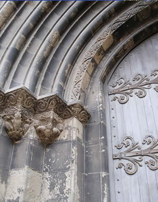 portail sous porche en arc en plein cintre et chapiteaux du portail