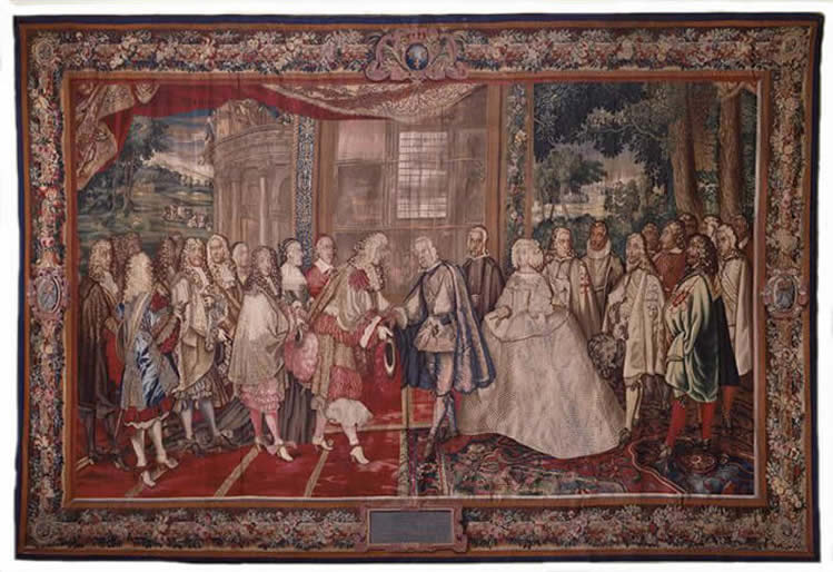 Le mariage de Louis XIV avec sa cousine, la fille du roi Philippe IV d'Espagne, fut âprement négocié dans une conférence qui dura trois mois (24 rencontres entre le 13 août et le 7 novembre 1659) dans l'Île des Faisants, entre le cardinal Mazarin et don Luis de Haro, en même temps que le traité de paix dit des Pyrénées, d'où le nom donné également à l'île : « île de la Conférence ».