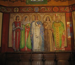 * clocher-porche ; nef avec tribunes de bois à 2 niveaux (17e siècle) régnant sur 3 côtés.