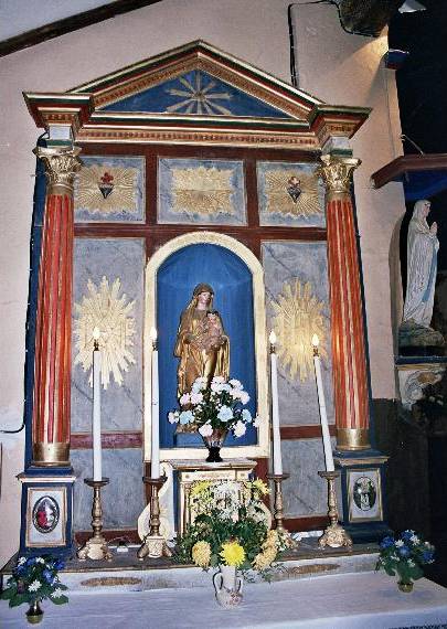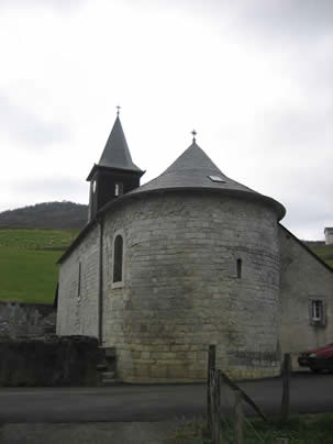 Eglise de fondation romane. Réfection en 1828, vraisemblablement peu importante. La porte d' entrée est surmontée de l' inscription: "Haec porta domus domini 1828".